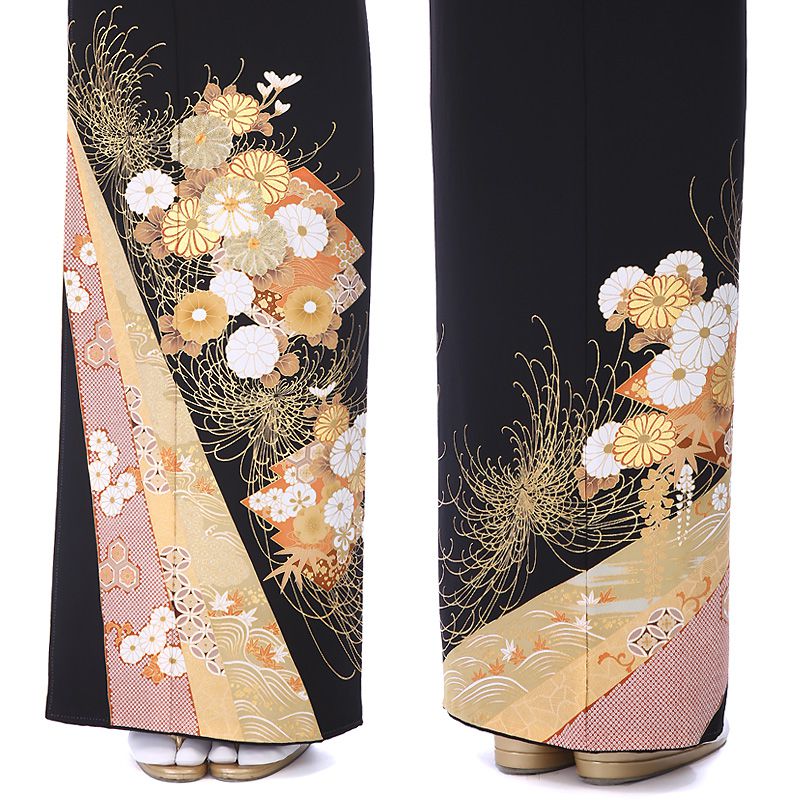 黒留袖 T327 桂由美 薔薇と扇 黒留袖レンタル 京都着物レンタル夢館